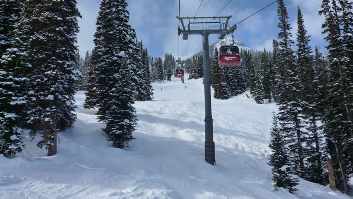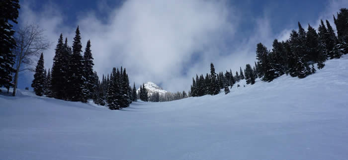 Jackson Hole is famous for miles of skiing in ungroomed natural bowls, plenty of high-altitude tree skiing and "Corbet's Couloir", a near-vertical 'corridor' runing between cliffs. Although Jackson Hole has a reputation as a tough mountain, we found it to be fantastic place with a great atmosphere, varied and challenging terrain and excellent snow conditions. We were very lucky as nightly snow showers provided a few inches of fresh powder almost every morning.