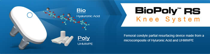 BioPoly™ is a next generation microcomposite orthopaedic biomaterial, combining Hyaluronic Acid (Bio) and ultra high molecular weight polyethylene (Poly). BioPoly Partal Resurfacing Implant is indicated for patients who present with a painful articular cartilage lesion of the femoral condyle and who is not a candidate for biological treatment (articular cartilage repair) or total joint replacement